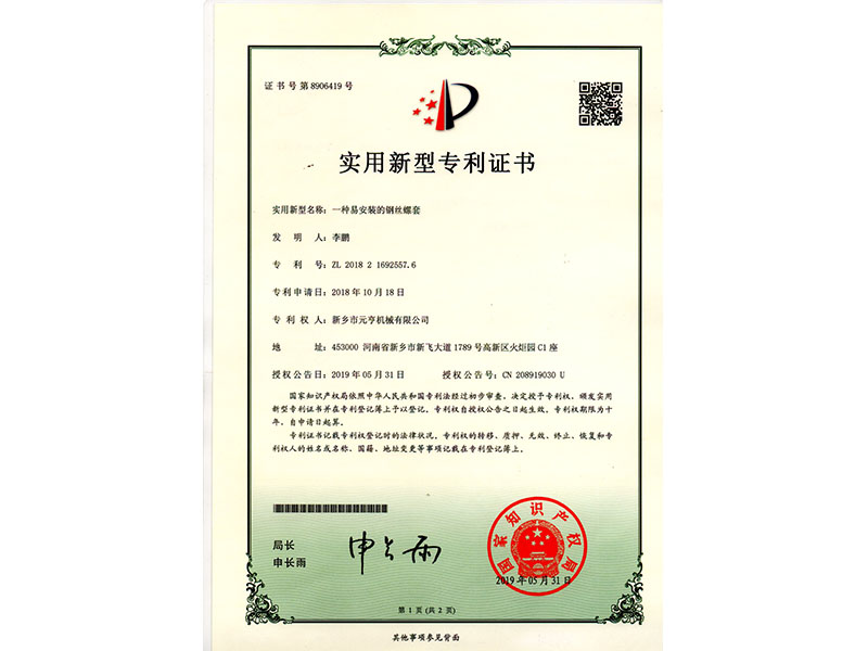歡迎來訪鋼絲螺套_新鄉(xiāng)市元亨機械有限公司!
