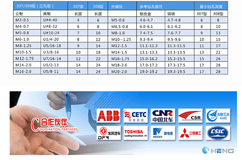 對有折斷槽的鋼絲螺套,旋入螺孔后應將安裝柄去除,需用去柄工具。通孔時要將鋼絲螺套安裝柄折斷一般用沖斷器對準安裝柄 200g 左右的榔頭猛打一下即可去除對于 M18×2.5 以上的粗牙鋼絲螺套和 M14×1.25 以上的細牙鋼絲螺套 , 用尖嘴鉗上下彎曲安裝柄就能折斷,然后將斷下來的安裝柄從螺孔中取出即可。