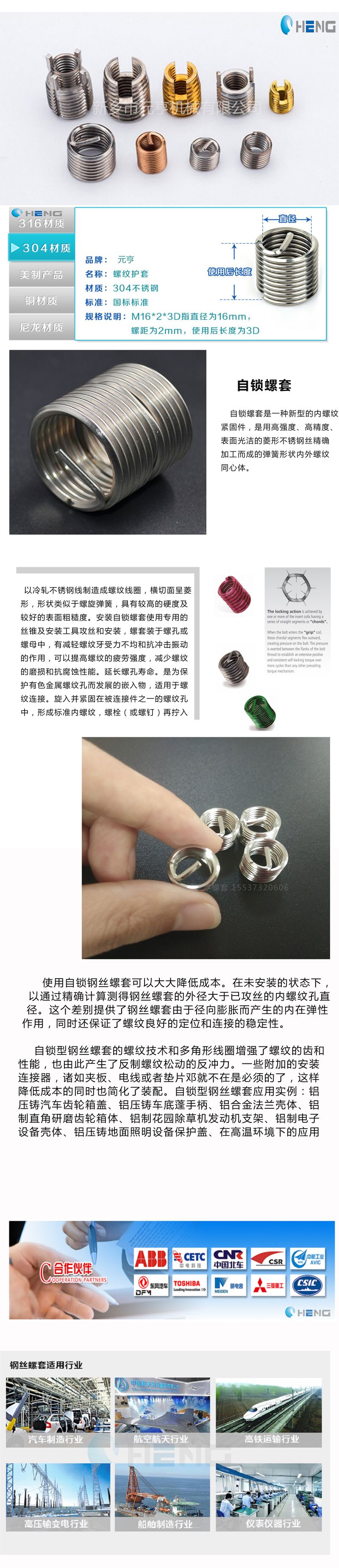 簡易螺紋護套安裝工具有螺紋頭、光桿兩種。用于少量安裝,一般維修、實驗時用,操作時不易安裝,鋼絲螺套容易報廢。