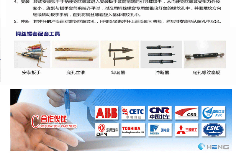 簡(jiǎn)易螺紋護(hù)套安裝工具有螺紋頭、光桿兩種。用于少量安裝,一般維修、實(shí)驗(yàn)時(shí)用,操作時(shí)不易安裝,鋼絲螺套容易報(bào)廢。