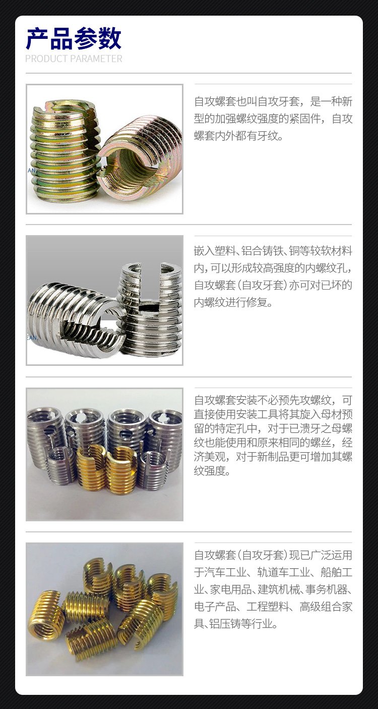 - 點(diǎn)贊踩 308自攻螺套 元亨機(jī)械 鋁合金 不銹鋼 可定制 加強(qiáng)螺紋