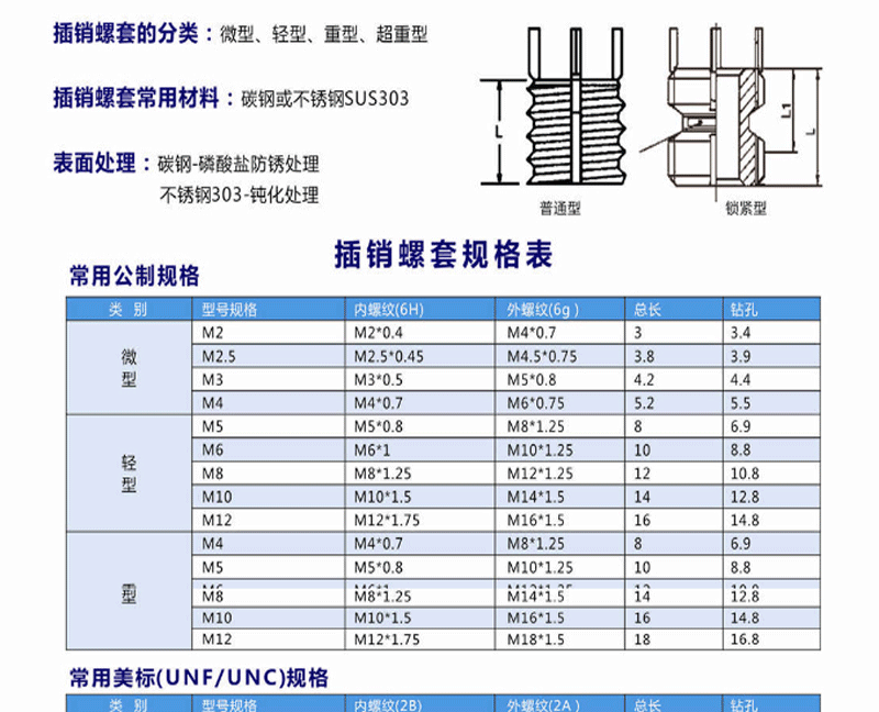 表1 公制(M、MJ)系列粗牙鋼絲螺套參數表 單位:(mm)
