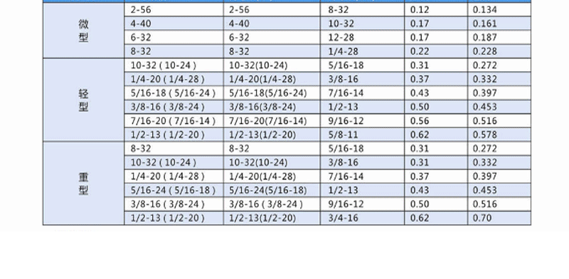螺紋規格 | 鉆頭直徑( mm) | 螺紋規格 | 鉆頭直徑( mm) |